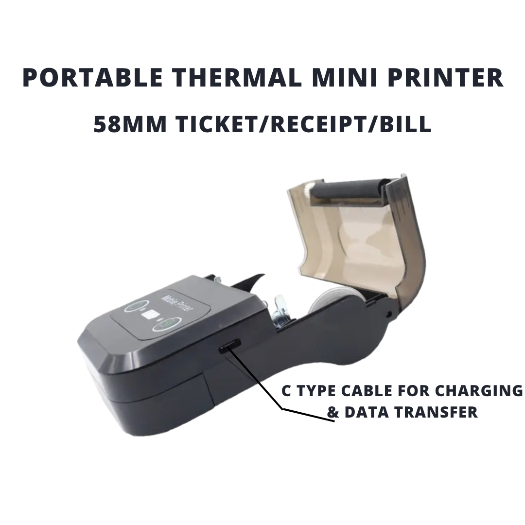 ASOL 2inch Receipt Printer 58mm Portable Pocket Receipt Printer | Battery Printer