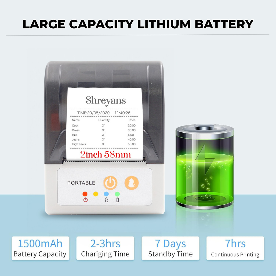 ASOL 2inch Portable Receipt Printer with Billing Software | 58mm Receipt Printer with Auto cutter